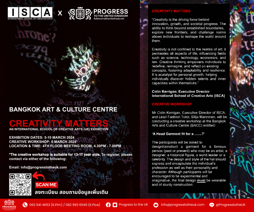 น้องๆสายCreative Art โอกาสมาถึงแล้ว!! ไม่ต้องบินไปไกลถึงอังกฤษ ก็สามารถเข้าร่วม Workshop กับ ISCA โรงเรียนศิลปะและแฟชั่นดีไซน์ชั้นนำจากประเทศอังกฤษที่ส่งนักเรียนเข้า UAL ได้ถึง 96% ฟรี!! ไม่มีค่าใช้จ่าย